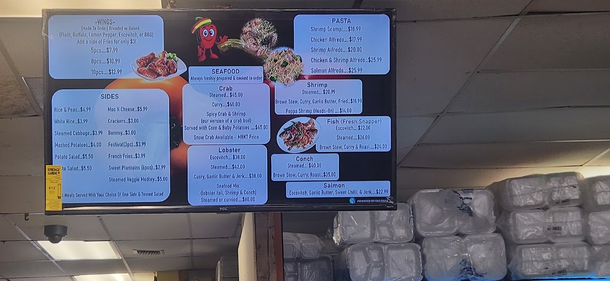 Start your meal with delectable Wings, available in flavors like Buffalo, Lemon Pepper, and BBQ, paired perfectly with fries. Seafood lovers will revel in dishes such as Escovitch Fish and Shrimp Scampi, each a unique expression of the Caribbean coast. Don't miss the exquisite Brown Stew Fish or the mouthwatering Peppa Shrimp, sautéed in a spicy pepper sauce that leaves a lingering warmth.